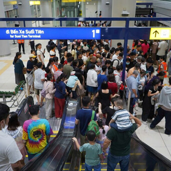 据法新社报道,胡志明市地铁1号线开通首日,成千上万的越南民众涌入车厢,庆祝这条延误多年的地铁的开通,每个车站都排起长队。